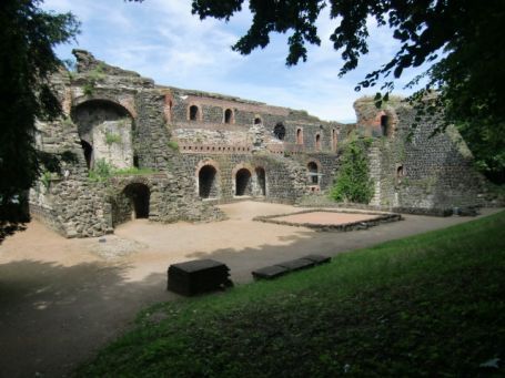 sieht man die Pfalz am Rhein bzw. die Ruinen der alten Kaiserpfalz.